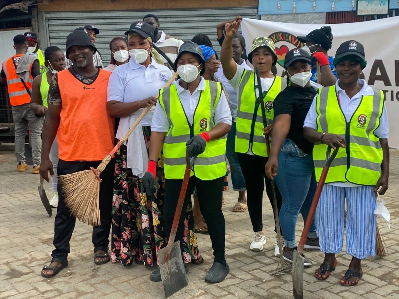 This launch project marked the beginning of the Ohemaa Bea Adamu Katakyie Foundation (OBAK) through a large-scale community clean-up at the Nsawam Coach and Taxi Station — one of the busiest transport hubs in the area. The initiative focused on clearing waste, unclogging long-blocked gutters, and improving sanitation in partnership with station leaders, Zoomlion Waste Management, and local environmental authorities.